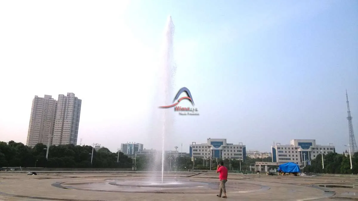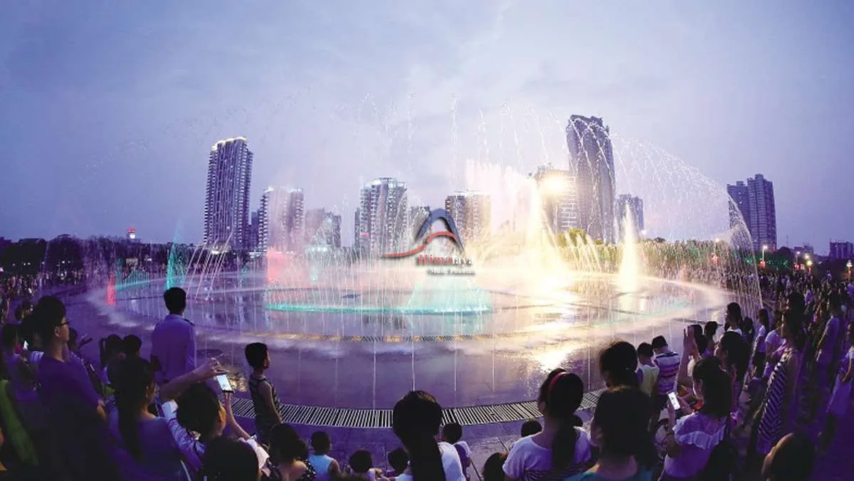 Changsha Tongcheng Square Musical Fountain project was designed and constructed by Himalaya Music Fountain (HMF) in 2013,it is designed as a 60-meter diameter circular dry floor fountain, The music fountain is composed of 17 groups of water types, such as central pillar, thriving momentum, singing and dancing, clouds and mist, dynamic running fountain, blooming fireworks, peacocks unfolding, united hearts, guests from all directions, sailing in the business sea, boundless journey, surging springs, special designed leaping jets, rainbow soaring, and others.