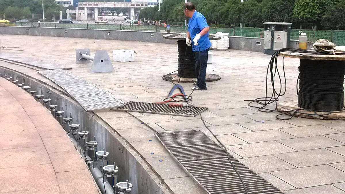 It is a large circular dry floor fountain for shopping mall square in Changsha. Which is composed of a total of 2620 nozzles, 108 water pumps, and 2059 fountain lights, with a fountain activation power of 518.74KW. At the end of November in 2018, Himalaya Music Fountain initiated the maintenance of the Tongcheng Square Dry Floor Music Fountain in Changsha City, which was done by early December in 2018.