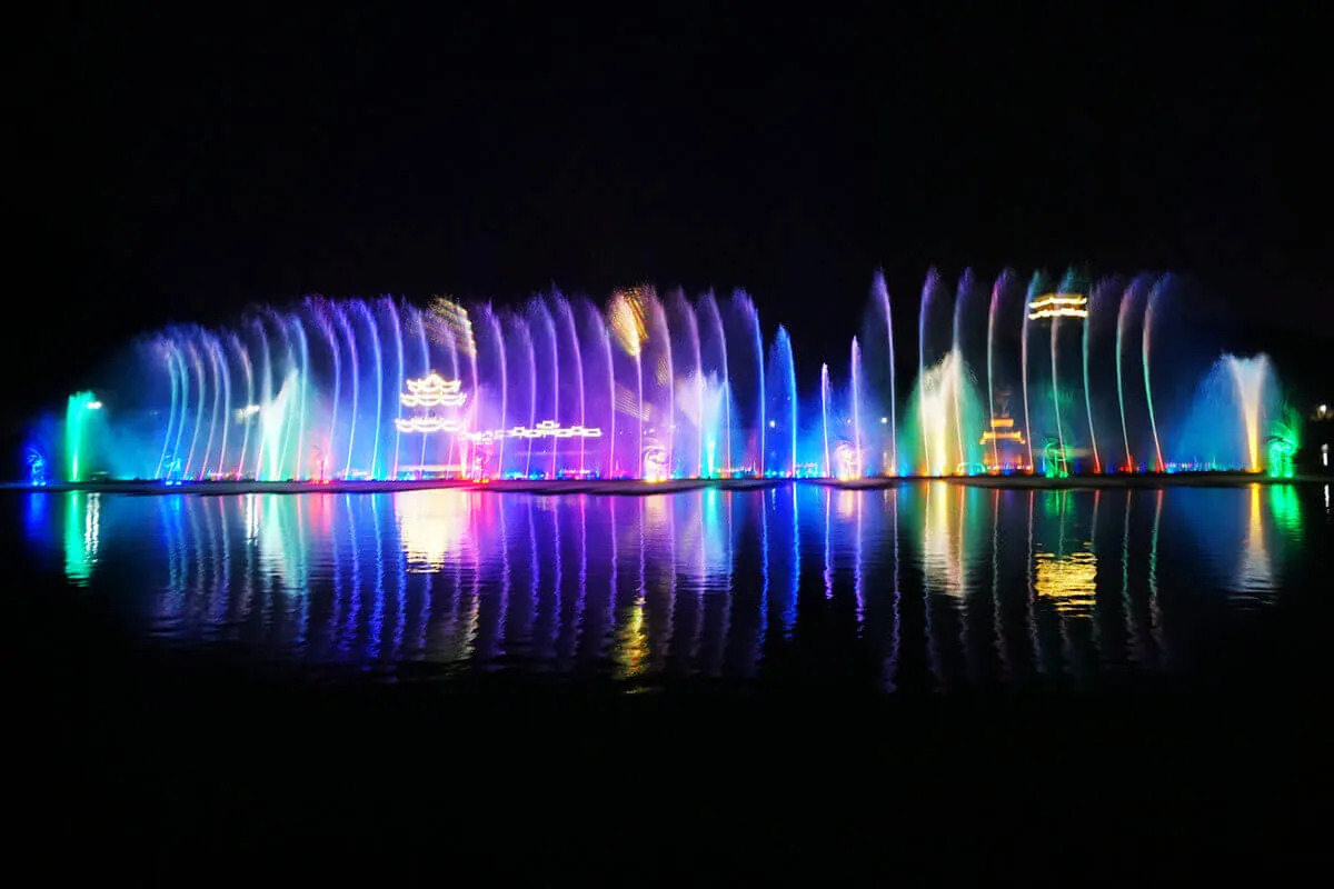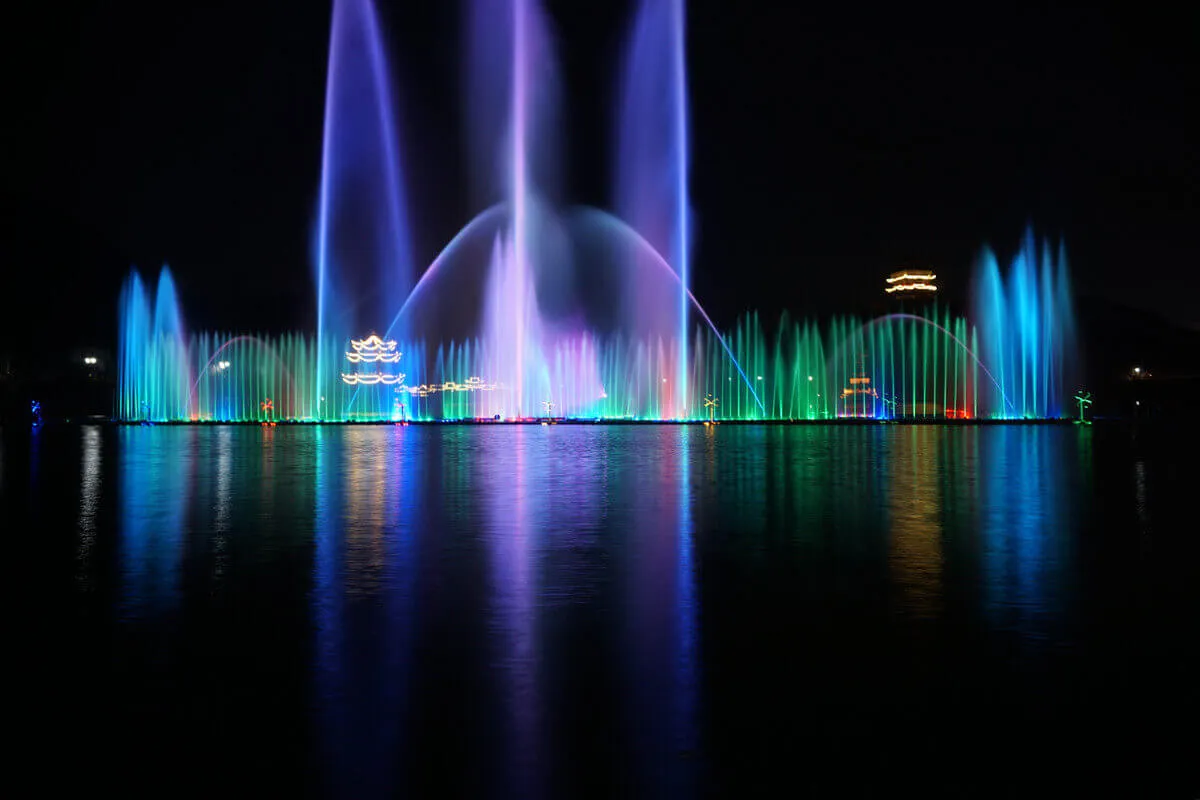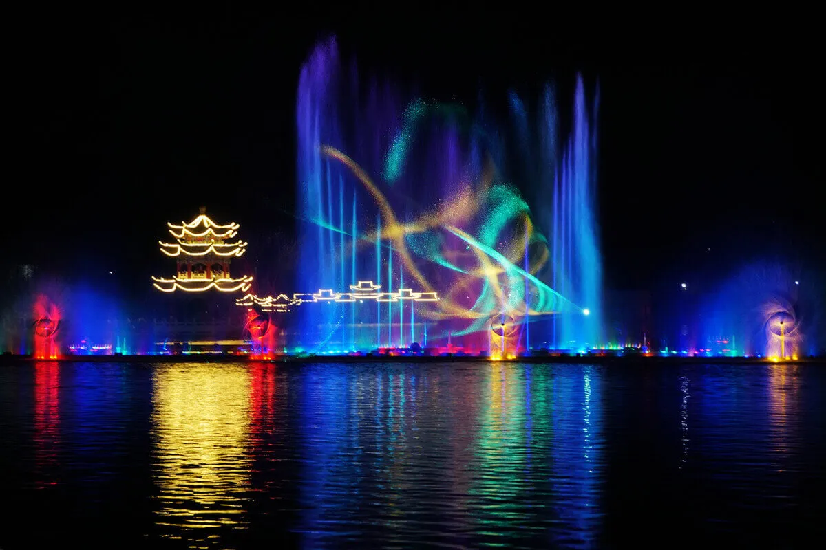 The Guilin Cultural Park Music Fountain, situated at the Shen Nong Lake in the ancient Guilin County, was rebuilt and upgraded in 2019 by the Changsha Himalaya Music Fountain Equipment Co., Ltd. This music fountain is of immense scale, spanning a total length of 80 meters and a width of 45 meters, presenting as a floating music fountain. The design of the music fountain encompasses not just dozens of water patterns but also incorporates nearly a thousand delicate nozzles, capable of precise performances synchronized to the melodies and rhythms of music.