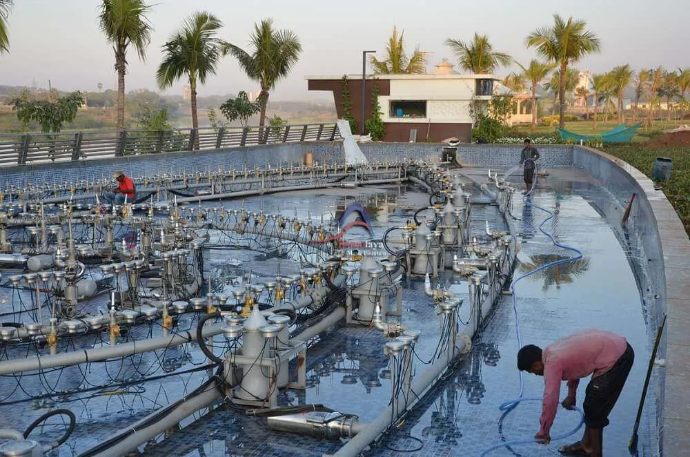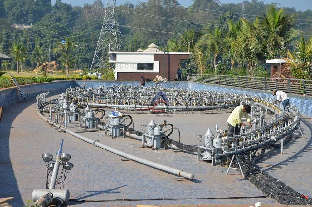 The Regency Antilia Music Fountain in India was designed and constructed by Himalaya Music Fountain (HMF) company in 2015. The music fountain features an eye-shaped design with dimensions of 60 meters in length and 15 meters in width. Comprising a total of 300 nozzle groups, the music fountain incorporates 5 types of water patterns.