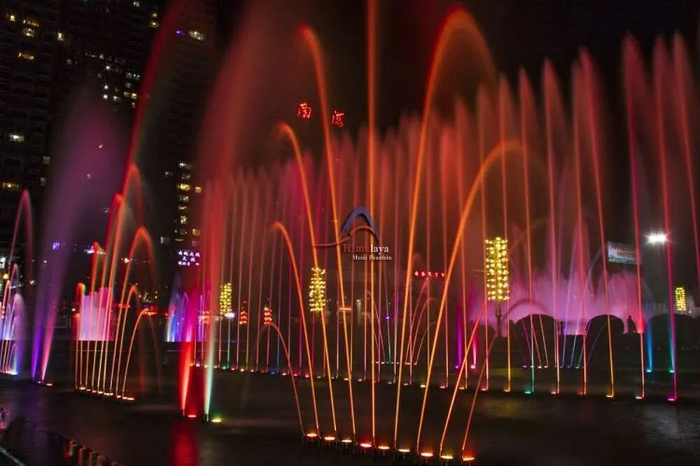 The San Lan Square Music Fountain is a popular attraction located in the city of Lanshan, China, cherished by local residents and visitors alike. The music fountain seamlessly combines water features, lighting, and music to create a magnificent audiovisual spectacle through meticulously choreographed performances by Himalaya Music Fountain (HMF).